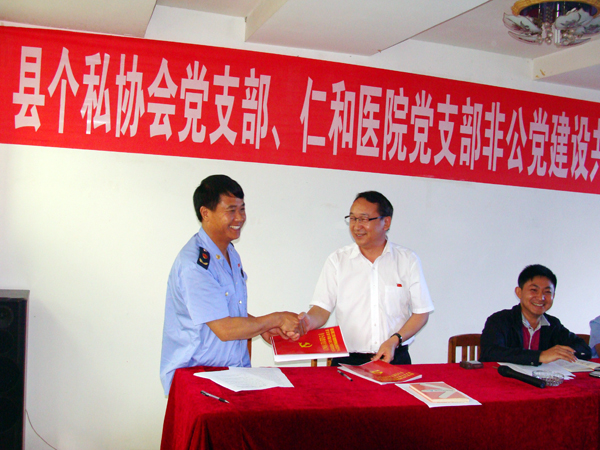 近年来,县仁和医院党支部在县委组织部的支持指导下,充分发挥职能作用,在落实上级党组织的要求,推进企业健康发展、开展党的工作等方面,做出了积极努力和有益的探索,取得了很好的经验。先后荣获“州级创先争优示范点”、“全州基层党建工作示范点”和州级“百强党组织”等多项荣誉称号,并被省州新闻媒体多次采访宣传报道。为把仁和医院党支部的好经验好做法推广开来,县非公党工委积极联系个私协党支部,在两个支部间建立起了互帮、互学、互助的桥梁,希望通过两个党支部的紧密合作探索出一条符合我县实际的“协会+企业”非公党建共建模式,为今后非公党建工作的开展提供一个典型经验。