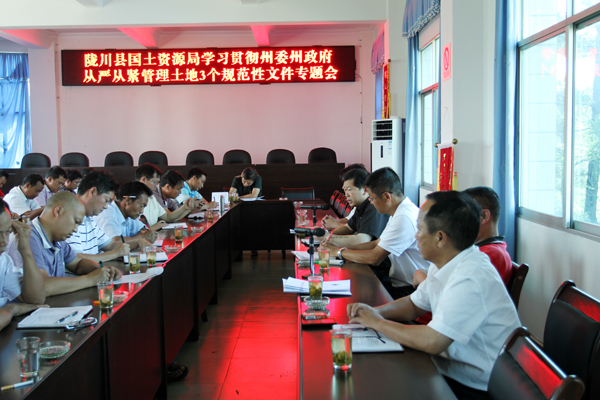 为依法依规从严从紧管理土地,严厉打击非法买卖土地行为,州政府下发了《德宏州人民政府关于严厉打击非法买卖土地行为加强土地市场秩序管理的通知》(州政府2013第13号公告)、《德宏州具体建设项目用地审批暂行办法》(德政发〔2013〕139号)和《德宏州人民政府关于加强建设项目规划用地管理的意见》(德政发〔2013〕143号)3个规范性文件。为贯彻落实3个规范性文件精神,陇川县国土资源局于近日召开了学习贯彻州委州政府从严从紧管理土地3个规范性文件专题会,全局干部职工及土地协管员50多人参会。