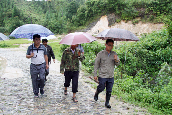 常副县长一行,徒步深入户撒乡坪山村委会坪山村民小组实地查看了地质灾害隐患点,认真听取乡村组有关负责人关于地质灾害隐患点形成原因、监测情况、发展动态等情况介绍,同时深入周边群众家中详细了解房屋受损情况,并希望他们提高警惕,一旦发现有地质灾害趋势要迅速撤离。