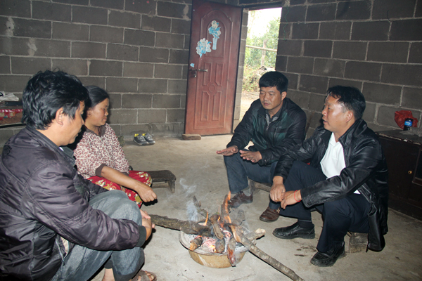 在董老七家中,73岁的他激动地说:现在我年纪大了,血压高一些,心脏也不是很好,不敢到处行走,有你们进村入户,我才能见到你们,我们一定听党和政府的话。而且现在的政策好,在党委政府的关心扶持,大伙种核桃、种甘蔗、打竹笋、养猪养鸡很积极,相信日子会一天天好起来的。但山区条件有限,生活依然还很困难,还希望你们经常来访贫问苦,多帮助我们解决困难。听到老人的话,尹书记很感动,他说:咱们山区群众生产生活的确不易,地处偏远,交通不便,收入来源单一,但有你们老一辈的支持和鼓励,我们一定会努力工作,为群众发展谋思路,为群众多解决实际困难,希望你们老人家保重身体,多教育后辈吃苦耐劳,靠双手创造我们共同美好的明天。