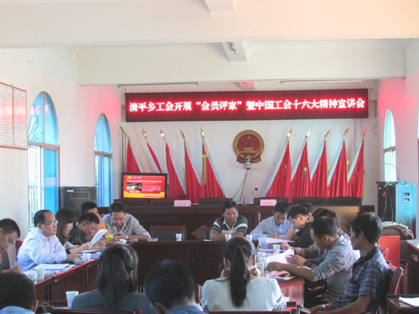 会上,乡工会副主席向会员宣讲了10月18日至22日在北京召开的中国工会十六大精神。宣讲中着重讲述了刘云山同志代表党中央所做的祝词、李建国同志所作的工作报告和陈豪同志所作的大会闭幕词中的讲话精神。