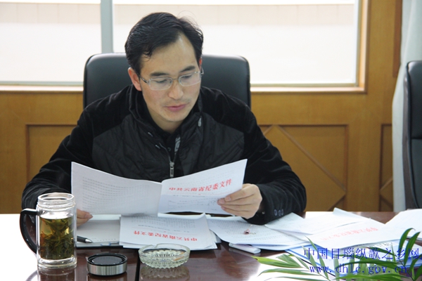 3月14日,县长郑洪云组织县政府党组成员及政府办机关全体干部职工开展集体学习。学习2014年中央《政府工作报告》,第二批党的群众路线教育实践活动推动会的会议精神,省纪委监察厅通报的违反中央八项规定和云南省《实施办法》10项规定公款吃喝、截留挪用公款、违规购车用车、大操大办婚丧喜事案件及存在“三难”、“四多”问题的部门的相关文件,并组织观看了《四风之害》的视频资料。