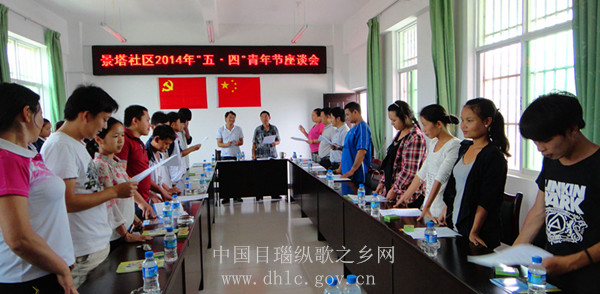 今年是纪念“五·四”运动95周年和中国共产主义青年团成立92周年的特殊日子,景罕镇景塔社区根据新形势下共青团工作的特点,组织社区共青团干部和社区创业青年,结合党的群众路线教育实践活动召开了一次意义重大的学习座谈会,社区党支部常务书记、景罕镇禁毒防艾工作队队长何志强、镇团委书记谭国才、陇川县第四中学党支部书记罗尚东应邀参加座谈会,会议由景塔社区党支部书记孔木兰主持。