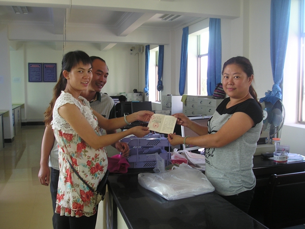 接到证后,李云兰、全国亮夫妇脸上都洋溢着幸福的笑容,李云兰说:我和丈夫2010年12月生了一女儿,一直还想再生育一个孩子给女儿做伴,但丈夫有兄弟姐妹,夫妻二人又不符合双独再生一孩的条件,所以想生二孩的愿望一直没有达成。前不久,从电视、网络、报纸等新闻媒体得知我省单独两孩生育政策在今年3月28日正式实施,我和丈夫看到后,非常高兴,就到当地人口计生部门咨询,经计生部门人员把关,本人和丈夫符合“单独两孩”生育政策,我们向计生部门人员上交了相关资料和证件申请“单独两孩”生育服务证,在工作人员热情关心办理下,前后仅6天时间,我和丈夫就领到了“单独两孩”生育服务证,我们很感谢国家这项政策,这项政策帮我们解决了想生二孩的愿望,现在领到了《生育服务证》,我们很开心、也觉得很幸运!我们忠心的感谢国家这项政策,谢谢热情的工作人员,谢谢你们!