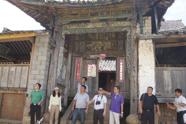 尹忠德一行先后到芒炳村芒旦草坡、明社村加孔装房、铅勒夫妻树、芒捧村芒捧装房、朗光皇阁寺等具有典型民族文化特色的地方考察调研。