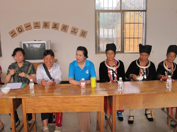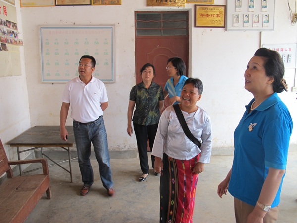 调研组一行在上寨坝妇代会主任金木玲的介绍下,参观上寨坝文化活动室并座谈。座谈会上,曼冒村妇代会主任金木玲介绍了阿努莫家园基本情况,她说:阿努莫家园创建于2012年1月,目的是带领阿努莫们积极开展互帮互助活动,关心村里留守妇女、留守老人和空巢老人的思想状况,使她们能够健康快乐的生活。