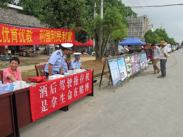 镇农业综合服务中心工作人员通过宣传栏、横幅、现场讲解农机交通安全知识及广播等形式,对农机安全生产法律法规进行广泛宣传。本次宣传共悬挂过街条幅9幅;农机安全宣传展板15块;张贴宣传标语30多张;设立法律法规咨询台2处;发放平安农机宣传挂图240多张;发放《农业机械安全生产知识读本》300多本,发放宣传单1000多张;通过本次的现场,大大提高了我镇农民的安全意识和遵章守法的意识,有效预防和消除了农机事故的发生,为全镇营造了良好的农机安全生产氛围。