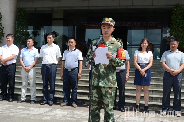 欢送仪式上,新兵代表在仪式上表达了决心,表示一定不辜负家乡父老的希望,在部队好好锻炼,争做一名合格军人。