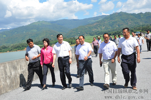 9月15日,由省政府党组成员、省移民工作领导小组组长张登亮率队的调研组一行在州长龚敬政的陪同下,深入陇川实地调研麻栗坝水库、龙江水库移民新村的建设情况。县委书记李正环、麻栗坝管理局局长何华、县政府党组成员童麻边陪同。