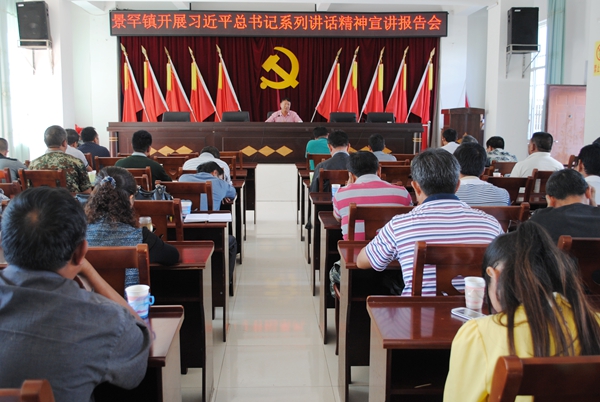 为深入学习贯彻习近平总书记系列重要讲话精神,培育和践行社会主义核心价值观,引导全镇各族干部群众更好的吧思想和行动统一到讲话精神上来,根据县委的安排部署,近日,景罕镇认真开展了习近平总书记系列重要讲话精神宣讲活动,宣讲活动深入到曼晃村委会、景罕村委会和镇直机关,一共进行了3场宣讲,在宣讲过程中,来自县人大民侨委的胡玉华主任作为宣讲人,采用辅导报告和交流互动相结合的方式进行宣讲,对群众关心关注的热点和难点问题进行现场解惑,通过宣讲,我镇群众和干部和思想得到了提升,充分领会了习近平总书记重要讲话的精神实质,为下一步建设好“美丽景罕”奠定了理论基础。