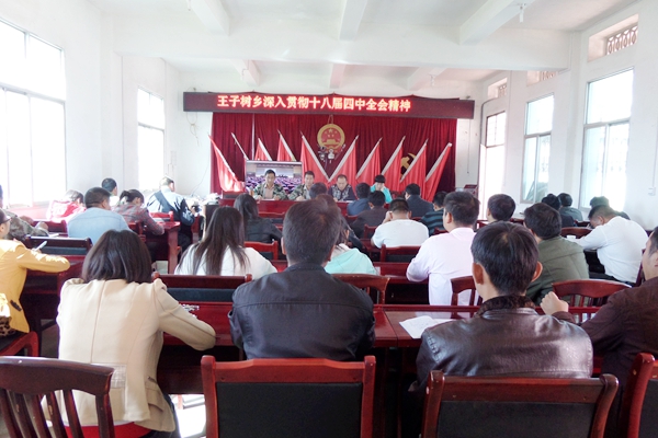 为深入贯彻党的十八届四中全会及中纪委十八届四次全会精神,11月3日下午,王子树乡组织乡全体干部职工及各村负责人、大学生村官共50余人在乡大会议室学习十八届四中全会及中纪委十八届四次全会精神,会议由乡党委书记尚正实主持。