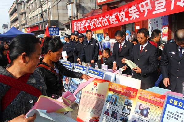 活动现场熙熙攘攘,从四面八方前来赶集的群众,不时到宣传台前驻足观看,咨询法律政策,领取宣传资料。在两天的宣传中,陇川县检察院共发放宣传材料1000余份,集中展示案例图片21幅,现场接受咨询6人次。通过参与陇川县平安法治建设秋季集中宣传活动,营造了“人人关心、人人参与、人人支持、人人共享”平安法治建设的浓厚氛围。
