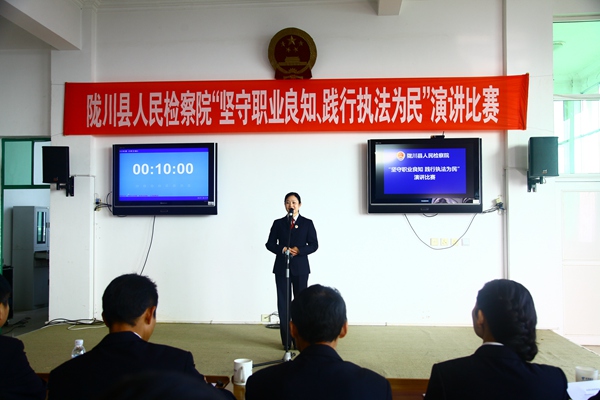 为深入推进“增强党性、严守纪律、廉洁从政”专题教育活动,巩固和深化党的群众路线教育实践活动成果,教育引导全体检察干警坚定理想信念,提升职业良知,恪守检察职业道德,11月13日上午,陇川县检察院举办了“坚守职业良知、践行执法为民”主题演讲比赛。