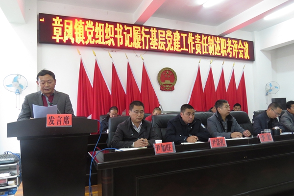 为全面落实党建工作责任制,推进全镇书记抓基层党建工作责任制长效化、常态化,按照县委组织部述职述党建、评议评党建、考核考党建、任用干部看党建的要求。12月8日上午,章凤镇召开党组织书记履行基层党建工作责任制情况述职考评会议,镇党委委员、各村(总)支部书记、常务书记、副书记、常务副书记,“两代表一委员”、各村(居)委会主任、副主任、大学生村官、党员、干部、群众代表共81人参加会议。会议由镇党委书记张树保主持。