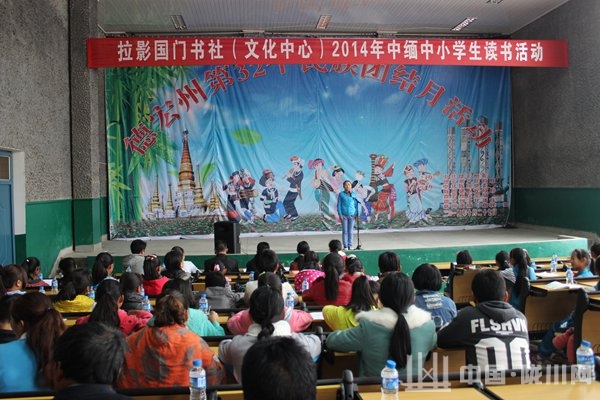 12月12日,在德宏州民族出版社的大力支持下,由陇川县委宣传部、陇川县文体广电旅游局主办,德宏州图书馆、陇川县图书馆承办的中缅中小学生读书活动在陇川县在拉影国门书社(文化中心)开展。