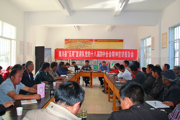 12月27日上午,陇把镇党委副书记杨名川、杨清炳及工作人员一行到所属挂钩村邦外村召开党的十八届四中全会精神宣讲报告会,村两委干部、党员、群众代表共50余人参加了会议。