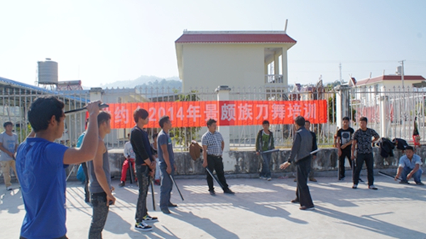 培训中,邀请到了县林业局退休老干部毛当栽老师进行现场授课,毛老师把刀舞的每个环节都做了耐心的讲解,并把所有的刀舞步骤一一把手指导,从最初的简单刀法学习、步伐走练到熟悉再到掌握。经过4天的苦练,学员们逐步学习掌握到了景颇刀舞的舞法和精髓,培训期间,各位学员相互帮助、相互指导、相互学习,相互促进气氛非常浓厚,全程培训在领导的关心、老师的耐心和学员的用心下圆满完成,达到了预期的效果。