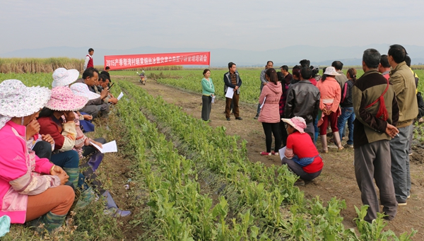 1月14日下午,陇把镇在帮湾村野油坝弄坎烟地组织召开2015年产季帮湾村晒黄烟丝冰雹灾害自救暨中耕管理现场培训会。陇把镇组织委员金南炯、副镇长张滚豹、农科站技术人员、帮湾村委会、受灾烟农共40余人参加会议。
