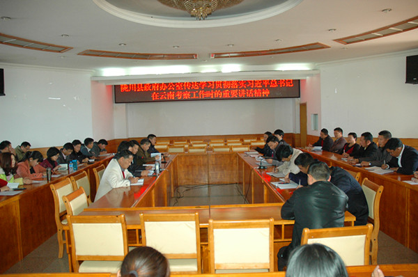 1月28日下午,陇川县政府办公室主任张志平带领全体干部职工认真学习习近平总书记在云南考察工作时的重要讲话精神。县信访局、政务服务管理局、机关事务局、生物办、接待办、法制办等相关部门全体干部职工参加学习。