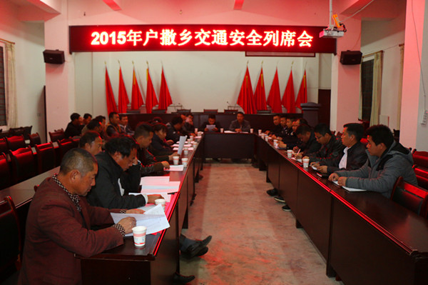 2015年2月3日晚,户撒乡召开交通安全列席会,乡党委书记宋宏恩、乡长张晓明、副乡长许有旺到会指导,交警三中队民警、安监站工作人员、客运车辆驾驶员等共计20余人参加会议。