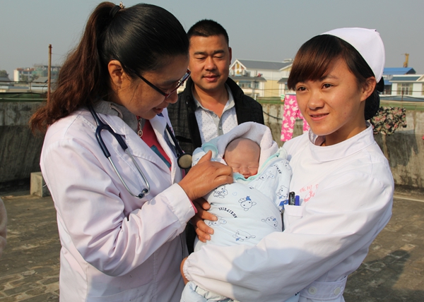 2015年1月6日,群众发现了一个被遗弃在河边的婴儿,送到县医院检查发现婴儿先天腹部畸形,脐部膨出一个很大的肿物,被一个透明膜包裹着,透过包膜可见肠管及肝脏等腹腔脏器。生命对于她来说是脆弱而残酷的,但我们的“白衣天使”给这个小生命带来新的希望。接诊医生检查后,给予保暖、禁食、吸氧、抗感染、静脉营养补液等对症支持治疗,请普外科、骨科主任急会诊,并及时向院领导报告。大家为婴儿取名了个好听的名字叫“杨欣艳”,希望她活得绚丽多姿。