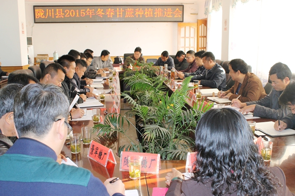 3月4日上午,陇川县召开2015年冬春甘蔗种植推进会。县委书记李正环,县领导寸待纯、常枝旺、滕杉、杨旺保,县甘蔗督导组组长杨恩跃,国地、糖办、县委督查室、政府督查室及各乡镇、农场等主要领导参加会议。会议由常枝旺主持。