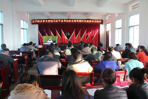 3月11日,王子树乡组织学习贯彻“习近平总书记在云南考察时的重要讲话精神”,全乡领导班子、干部职工、各村委会班子成员60余人参加学习会,会议由乡组织委员李云超主持。