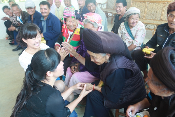 敬老院里洋溢着温暖的气氛,座谈会上,王莉琼检察长带领志愿者与老人们相互坐在一起聊天交流,听老人叙说过去,并向老人们发放了水果、蛋糕、面条等食物。一位阿昌族的老人被志愿者的热情和朝气所感染,自发献上了一首少数民族歌曲,老人们纷纷跟着节奏打起节拍。老人们还热情的邀请志愿者参观他们的劳动成果,在一片小小的菜地上,种满了蔬菜、水果。老人们告诉志愿者,在他们力所能及的范围内自己动手,现在吃的都是自己亲手种的有机食物。在此次活动中,志愿者们用自己热情与行动为老人服务,让老人们感觉到社会大家庭的温暖。