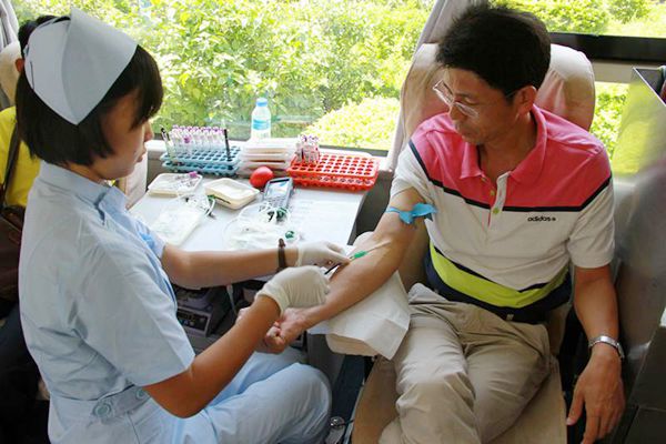 在采血点,干警们依次排队进行,严格按照要求填写献血表格,有条不紊,接受医护人员的脉搏测试、转氨酶检验等献血前置项目的检查,体现了法院干警纪律严明,展现了法院干警热心公益的文明风采。