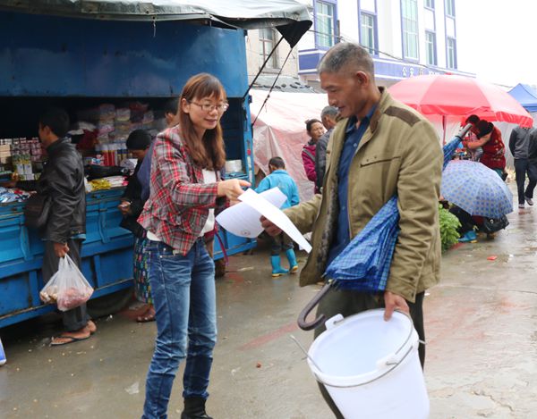 6月16日是王子树的街子天,当天在乡政府农业综合服务中心门口设置宣传场地。当日正值王子树各村民赶集之日,王子树街十分热闹,人口流动也较大,能有效扩大宣传面积。