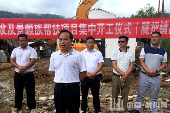 随后,村组负责人、村民代表及施工单位负责人分别进行了表态发言。县政府党组成员童麻边郑重宣布陇川县脱贫攻坚民房建设及景颇族帮扶项目正式开工,在阵阵鞭炮和轰鸣的挖掘机声中,陇把镇开启脱贫攻坚民房建设新篇章,奏响了景颇人民幸福生活的新乐章。