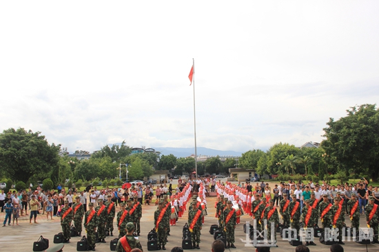 9月9日,陇川县在县政府综合大楼前召开新兵欢送大会,四班子在家的领导及机关干部职工、社会各界人士、新兵家属及周边群众参加了欢送大会。据悉,今年我县首批入伍新兵共有31名。