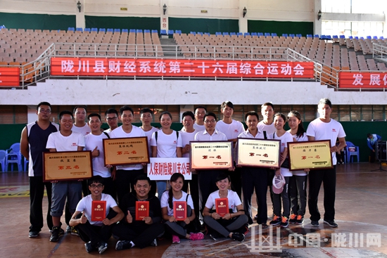 随后,运动会总裁判长宣布了各项比赛运动员成绩后,组委会对运动会财务收支情况进行了公布,并对此次运动会获奖者进行了颁奖。获得本届运动会团体总分第一名的是县财产保险公司,第二名是主办单位县财政局,第三名是县地方税务局。获得优秀组织奖的是县工业和商务局,其他参赛单位分别在个人比赛单项上获得优异成绩。