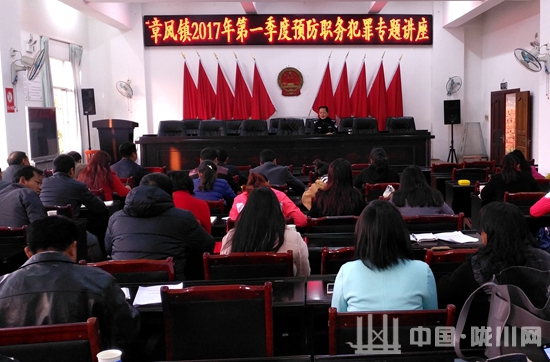 2017年2月27日上午,章凤检察室充分利用镇政府组织全镇干部职工、各村委会干部集中行政学习之机开展了一次系统性职务犯罪预防讲座。讲座紧紧围绕工作实际,由于章凤镇地处县城经济、文化中心所在地,干部职工队伍庞大,环境复杂,检察室按照年初工作计划采取在节后、年初开展系统预防。