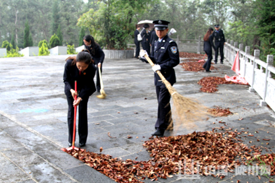 整个活动中以扫墓献花的方式寄托哀思,进入烈士陵园后,干警们先对陵园内垃圾、墓碑进行清扫,随后干警们神情庄重、秩序井然的肃立在革命烈士墓碑前,向革命先烈敬献花圈、鞠躬,表达对革命先烈无限的敬仰,寄托对革命先烈无限的哀思。