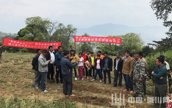 会后进行了实地栽种示范教学,技术人员边示范栽种的技巧边就栽种深度、棵距行距、定植方法、施肥等关键环节作了一一讲解,县政协副主席杨廷荣、毛永军及王子树乡党委副书记 乡脱贫攻坚指挥部指挥长李云超还到现场进行了观摩。