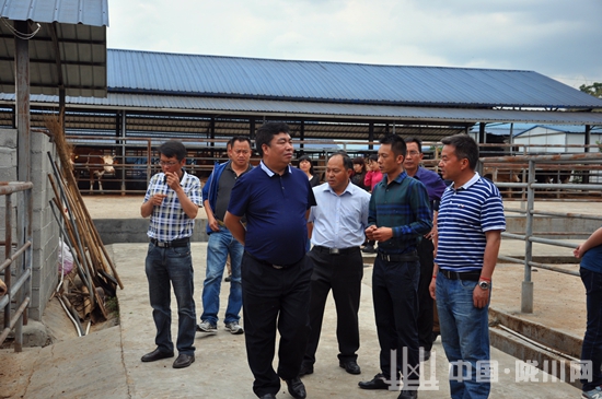 在考察芒弄村南多景龙肉牛养殖场时,尹主任一行对景龙肉牛养殖场的标准化、规模化、现代化的养殖表示出浓厚的兴趣,“种牛从哪里引进”?,“如何繁殖”?“采用什么方式育肥”?“现如今收益如何”?考察组们详细的询问,认真的听介绍。