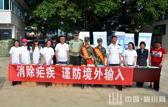 一是在县广播电视台循环播放宣传片“大牛受疟记”;二是依托基本公共卫生服务平台在村卫生室以板报形式宣传68期次;三是于 2017年5月15日联合县出入境检验检疫局、拉影边防派出所、盐业公司三家单位在拉影口岸开展以“消除疟疾,谨防境外输入”、“每天一点碘,健康多一点”为主题的现场宣传活动。现场发放中缅双语疟疾宣传折页约2000份、登革热宣传折页3000份,疟疾、登革热宣传围裙100个,碘缺乏病防治宣传折页2000份,展出碘缺乏病防治知识宣传展板7块;中缅边境居民积极参与现场咨询,接受咨询群众达 160余人。累计发放宣传材料5000多份,本次系列宣传活动累计受益群众达6万余人。