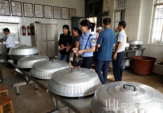 此次检查共分为三个小组进行,重点检查县人民政府、县直有关部门对校园及校园周边安全工作履职尽责情况和贯彻落实省政府4.28和5.19全省学校安全电视电话会议精神情况。县市场监督管理局着重对学校食堂的许可证及健康证持证情况、食品安全管理制度落实、食品留样、索证索票、餐饮具消毒保洁、食品原料仓库、校园 及周边食品经营户等进行了检查。