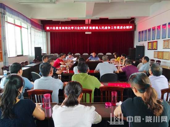 6月13日早上,陇川县教育局组织全体职工干部于局六楼会议室学习全州第四轮禁毒人民战争工作推进会精神。