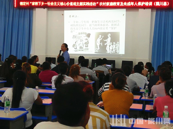 为深入贯彻落实习近平总书记“注重家庭、注重家教、注重家风”的讲话精神,进一步推动家庭教育工作,让家庭作为推进培育和践行社会主义核心价值观的落脚点。2017年6月13日上午,德宏州妇儿工委办主任马丽陪同省、州家庭教育、法制讲座专家深入到陇川章凤中心小学开展家庭教育、防治未成年人受伤害专题讲座。
