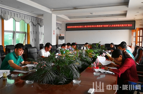 2017年6月13日上午,州委督查工作领导小组就关于对集中清理县级以上机关事业单位长期借调下级部门工作人员专项清理整治工作到我县进行督查。县委组织部、县人社局、县纪委、县编办、县委办、县政府办、县脱贫攻坚指挥部相关领导参加了会议。