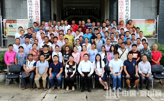 “云南大学服务云南行动计划”职教学院服务推广项目组组长陈占元博士、云南大学职教学习中心主任汪小杨出席授牌仪式,陇川农场党政领导班子成员,农场两级机关干部,各分场、茶厂生产队支部书记、队长共100余人参加仪式。