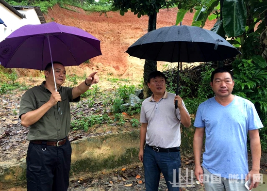 8月9日下午,滕杉深入章风镇户弄村委会芒棒村小组采石场、芒弄村委会芒弄村小组地质灾害安全隐患点进行监督检查。
