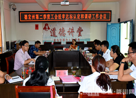 8月10日,德宏州第二季度工会经审达标认定和调研工作会议在陇川县总工会召开,省总工会经审办主任科员谢元宵,州总工会副主席、经审会主任孟成武,州总工会副调研员、经审办主任等领导到会指导。
