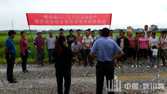 2017年8月11日上午,镇农服中心协同县植保站到迭撒村拉丙二组、拉勐村拉护、丙午、小街小组组织召开水稻病虫害防治技术培训会,针对水稻当前易发生的穗颈瘟、纹枯病、白叶枯病及细条病指导群众进行科学防治,向群众发放了一批高效、低毒、低残留农药,并组织开展统防。本次实施项目向群众免费发放农药9100包(瓶),其中:氯虫苯甲酰胺2600包,稻瘟灵1300瓶,噻呋酰胺2600包,烯啶.吡蚜酮2600包,共计投入资金5.2万元。