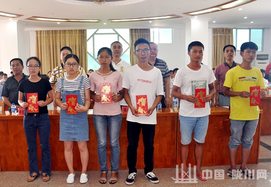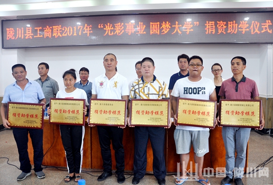 8月23日下午,陇川县工商联在综合七楼会议室举行2017年“光彩事业·圆梦大学”捐资助学发放仪式,县委常委、县委统战部部长白珊珊,县政协副主席、县工商联主席崔学舟出席捐资仪式。陇川福建商会、恒源公司、湘新公司、德昌公司、佳佳乐公司、叁象粮油公司等19家企业代表和受资助的学生、学生家长共计100余人参加捐助仪式,捐资总额达12.8万。捐资仪式由县委统战部副部长、工商联党组书记秦方乾主持。