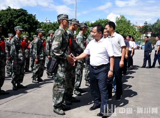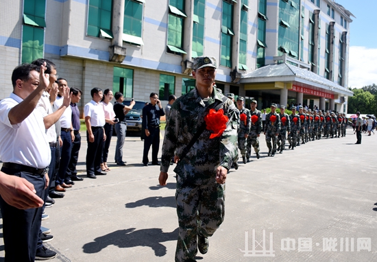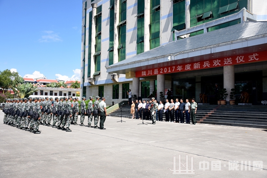 9月14日,陇川县2017年度新兵入伍欢送仪式在县政府综合楼前举行。县四班子领导、各单位干部职工、新兵家属为新兵送行。