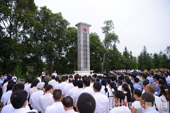 上午9时,陇川党政机关、军警学生、烈士家属、社会各界人士,怀着无限景仰之心,来到庄严肃穆的陇川烈士陵园,悼念烈士陵园里静躺着的30位烈士,他们为了国家的独立解放、社会的发展进步,前赴后继、流血牺牲,鞠躬尽瘁、死而后已,他们魂魄托日月,肝胆映河山,奠定了我们今天幸福生活的基础。纪念活动在庄严的国歌声中正式拉开序幕,县委书记李林山宣读祭文,带领大家回顾那些峥嵘岁月,抚今追昔,缅怀先烈。宣读完毕,全体人员肃立、脱帽向烈士默哀。随后,少先队员们唱响了《我们是共产主义接班人》。歌曲结束,武警战士神情庄重的踏着稳健的步伐向烈士纪念碑敬献花篮,县委、县人大、县政府、县政协、主要领导缓步上前,仔细整理花篮缎带。全体人员向烈士行三鞠躬礼,在工作人员的解说下瞻仰烈士碑廊,并向烈士敬献上洁白的菊花。