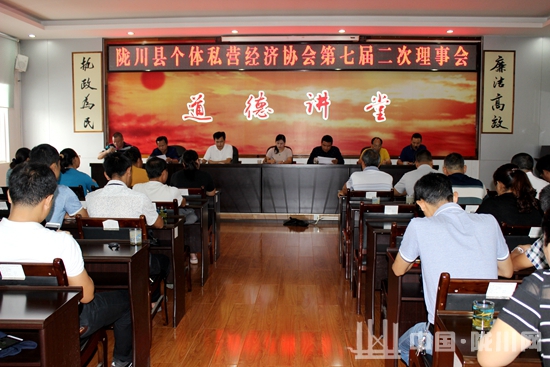 2017年10月19日上午,在州个私协会的指导和县民政局的监督下,陇川县个体私营经济协会在县市场监督管理局成功召开第七届二次理事会。县人民政府陈玲副县长、县市场监督管理局张知源局长、白陇生书记、县民政局领导、县个私协会会长赵佳鸿、常务副会长董文海、副会长黄良山、许洪良出席会议,虞祖福、黄子文等42位理事参加了会议,会议由个私协会秘书长濮进先主持。